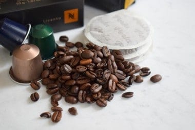| Nodig per kopje | 10-12 gram | 7-8 gram | 1 pad | 1 cup |