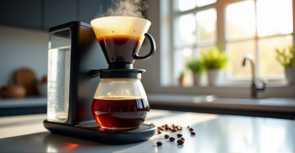 Het apparaat heeft een duidelijk afleesbaar waterreservoir, zodat je precies weet hoeveel water je moet toevoegen. Na het zetten zorgt de automatische druppelstop ervoor dat er geen koffie op het aanrecht druppelt als je de kan weghaalt. Dit houdt je keuken schoon.